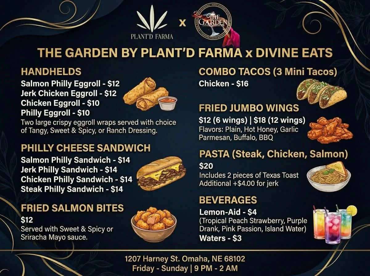 Visit The Garden to explore responsibly crafted THC drinks, enjoy a late-night kitchen menu, and discover a new kind of night out in Omaha—where quality, safety, and a relaxed vibe come together.